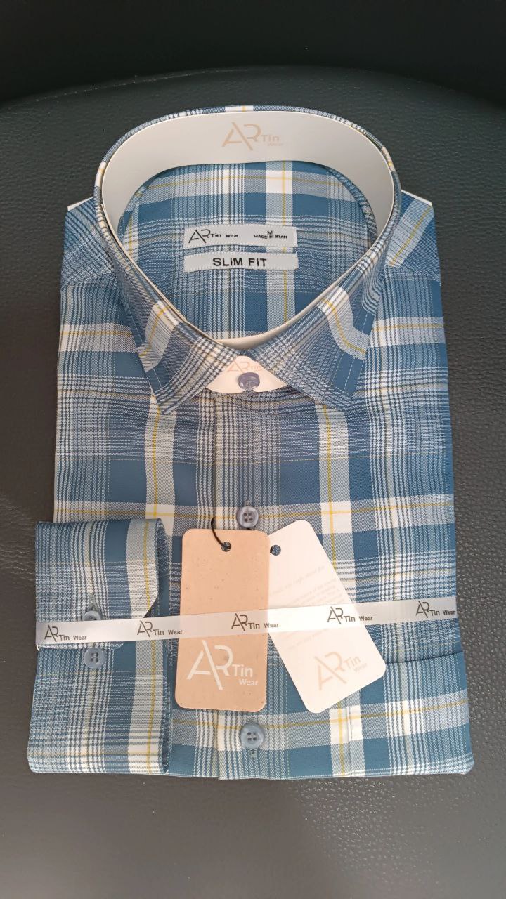 پیراهن مردانه خط دار چهارخانه پارچه حریر وارداتی